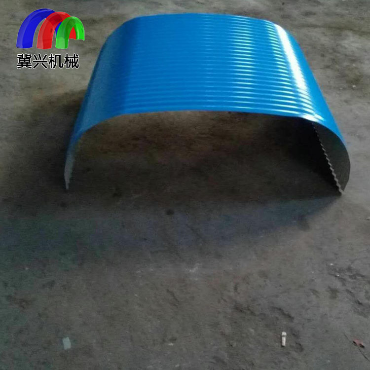 泊头市冀兴皮带输送机彩钢防雨罩防尘罩 波纹有38mm波纹32mm波纹65mm 常用型号有500、650、800、1000、1200、1400、1600、1800、2000等 防尘罩颜色蓝、白、红等可以按要求定做  厚度0.4、0.5、0.6、0.8、1.0
